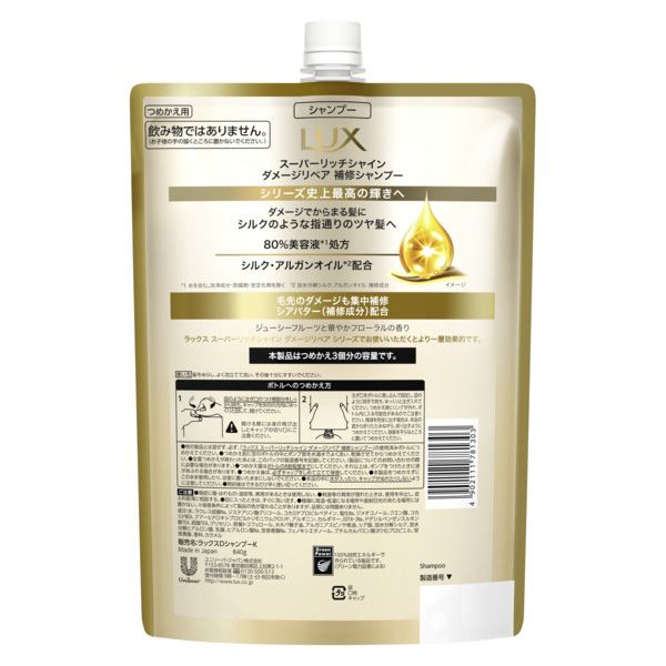 ラックス スーパーリッチシャイン ダメージリペア 補修シャンプー つめかえ用 840g