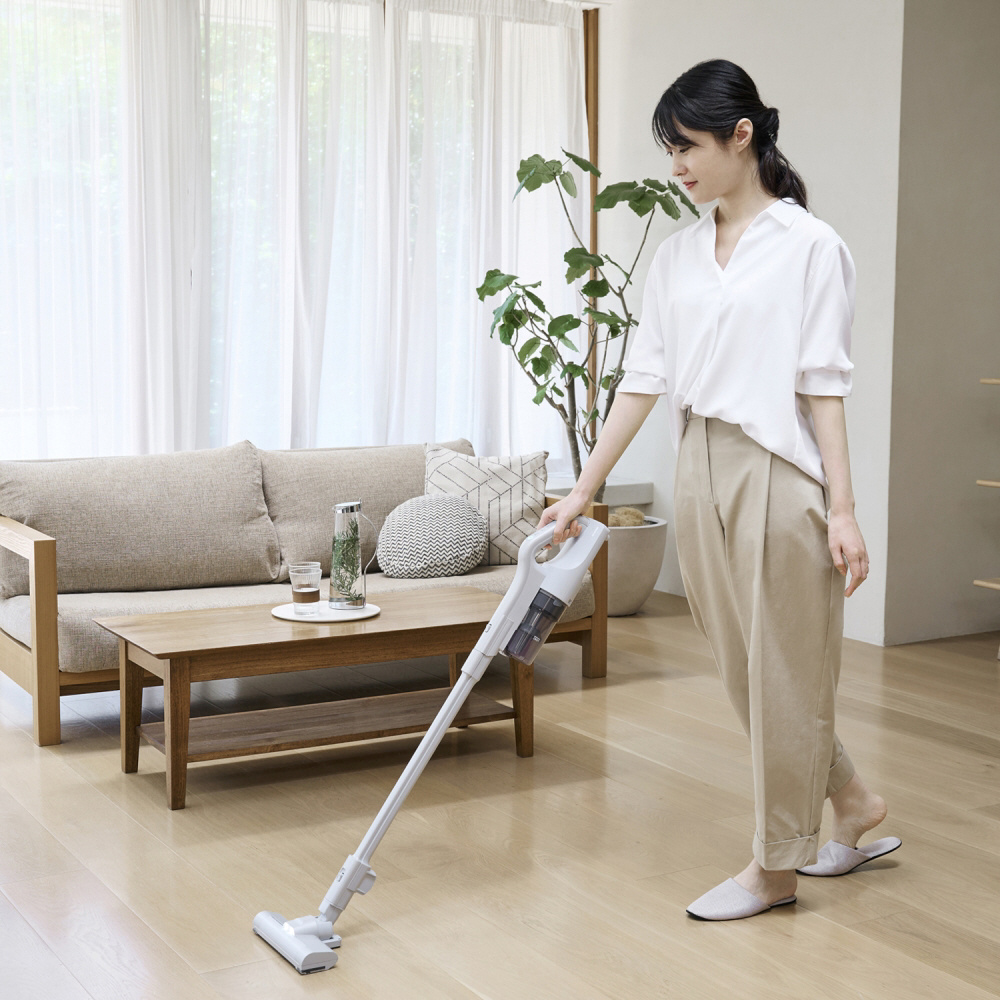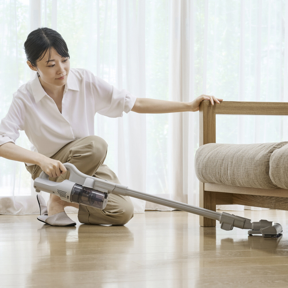 ■軽量の1.1kgで高性能モーターを搭載し強力吸引を実現した充電式サイクロンスティッククリーナーです。