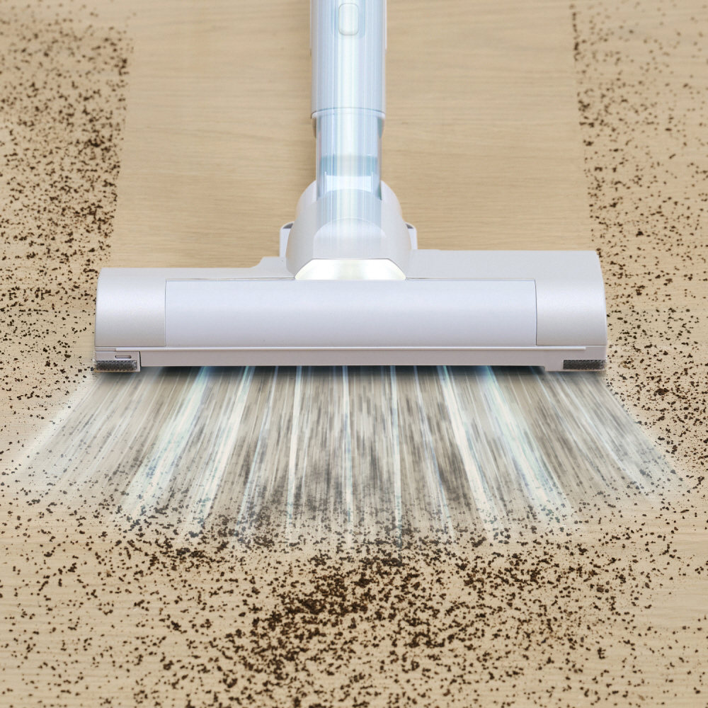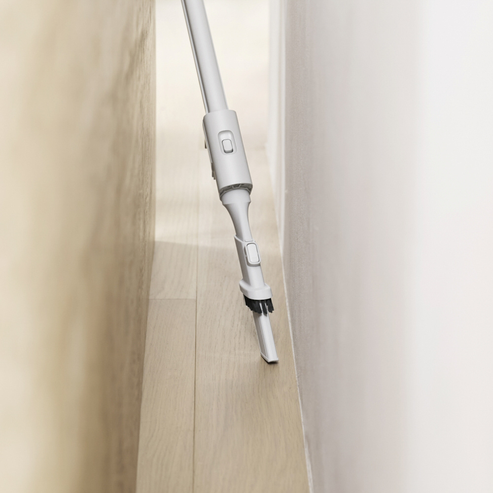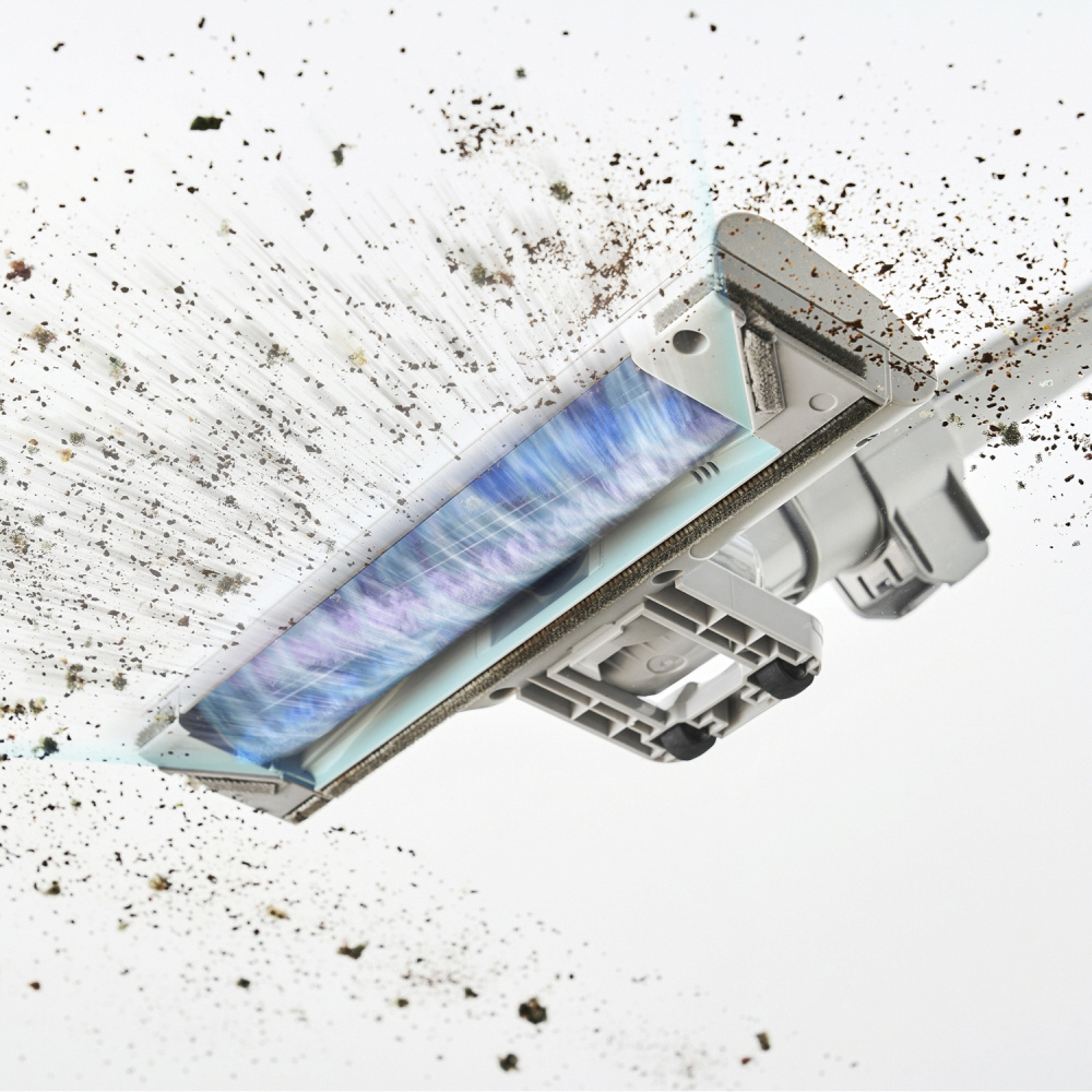■壁際のゴミの取り逃しを防ぐ【きわまでヘッド】を新搭載。壁際のごみもしっかり吸引出来る形状です。