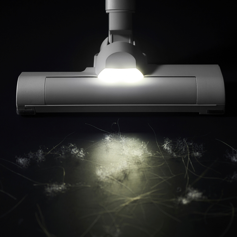 ■ゴミを見逃さない「W機能」。ゴミを照らし浮かび上がらせるLEDライトと、色の変化でゴミを見える化する高性能ほこり感知センサーでゴミの見逃しを防ぎます。