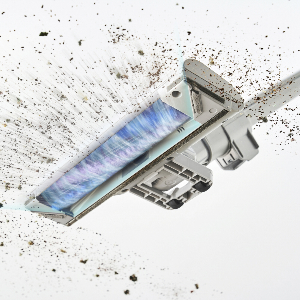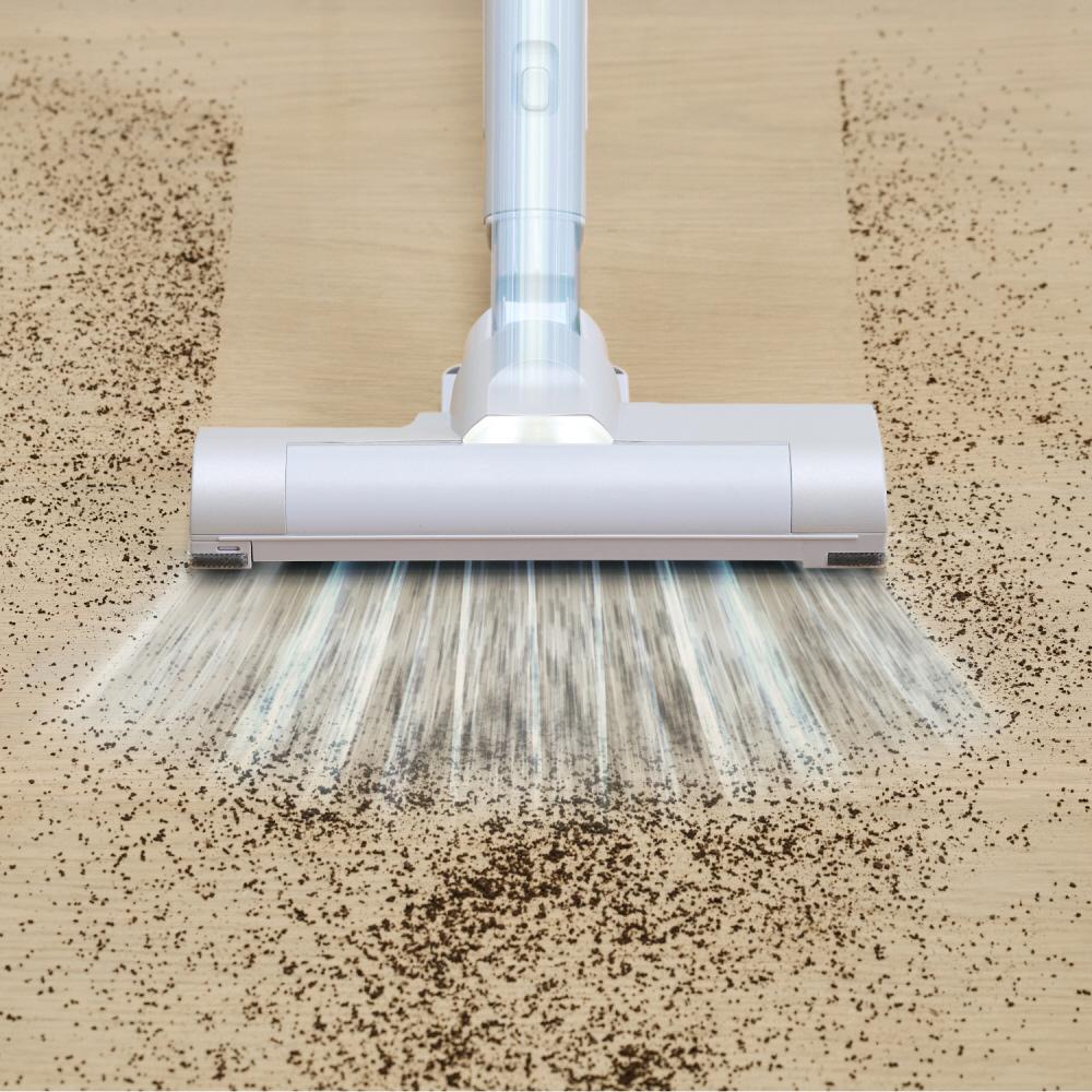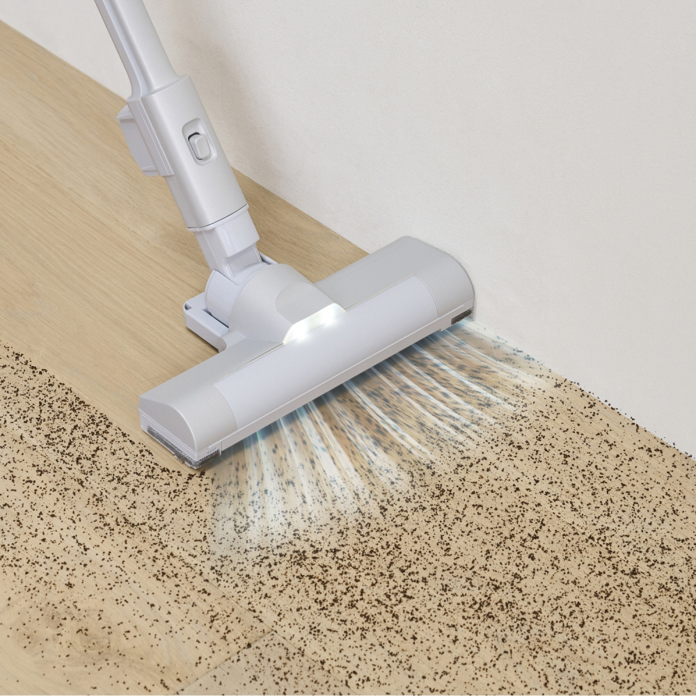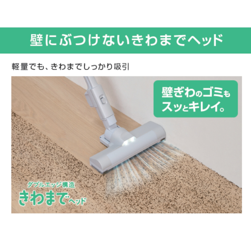 ■壁際のゴミの取り逃しを防ぐ【きわまでヘッド】を新搭載。壁際のごみもしっかり吸引出来る形状です。