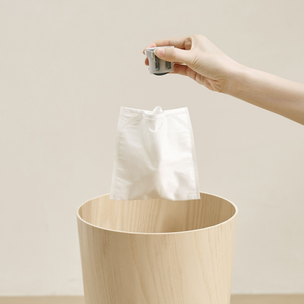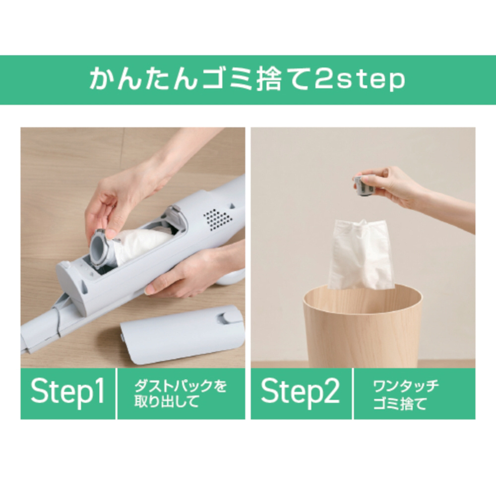 ■抗菌・防臭加工の不織布製ダストパックで手を汚さずにごみ捨てができます。