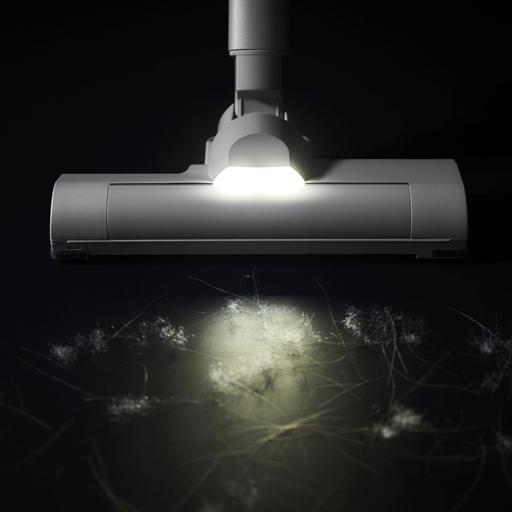 ■ゴミを見逃さない「W機能」。ゴミを照らし浮かび上がらせるLEDライトと、色の変化でゴミを見える化する高性能ほこり感知センサーでゴミの見逃しを防ぎます。