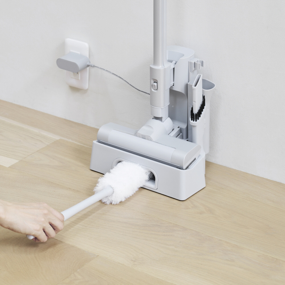付属品 充電アダプター、充電スタンド、静電モップ、モップ帯電ケース、すき間ノズル、使い捨てダストパック×50枚(1枚本体内にセット済み)