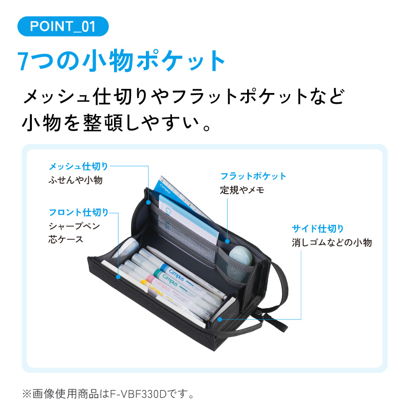 ごちゃつきがちなペンケースの中も、スッキリ整頓されて、使いやすさがアップします。