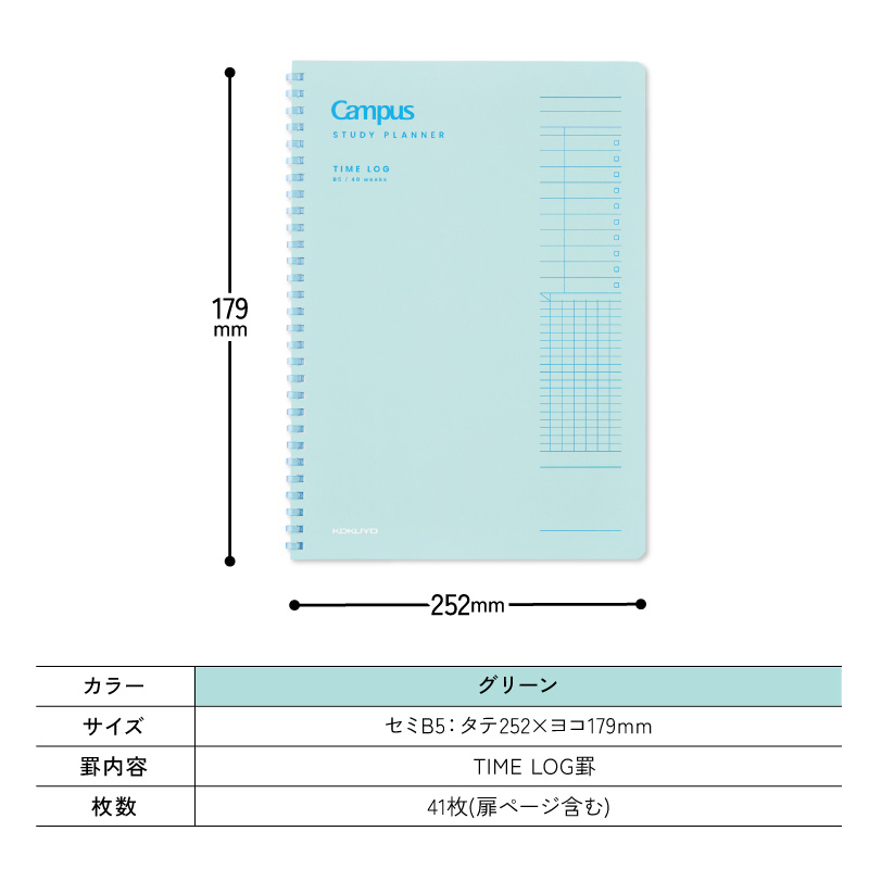 スタディプランナー<TIMELOG>B5 ス-SY111TL-G Campus(キャンパス)