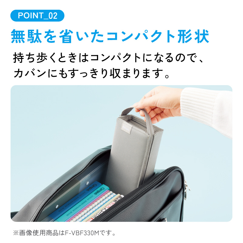 たくさん入るのに、カバンの中でかさばりにくいスリムな形状。