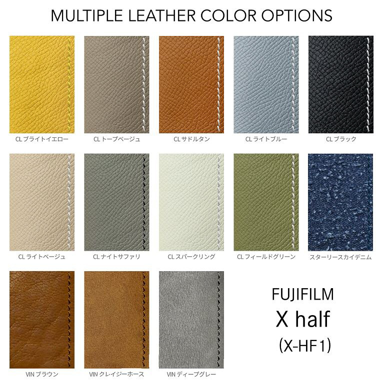 高品質な本革を使用した、富士フィルムX half(X-HF1)専用本革ボディケースです。