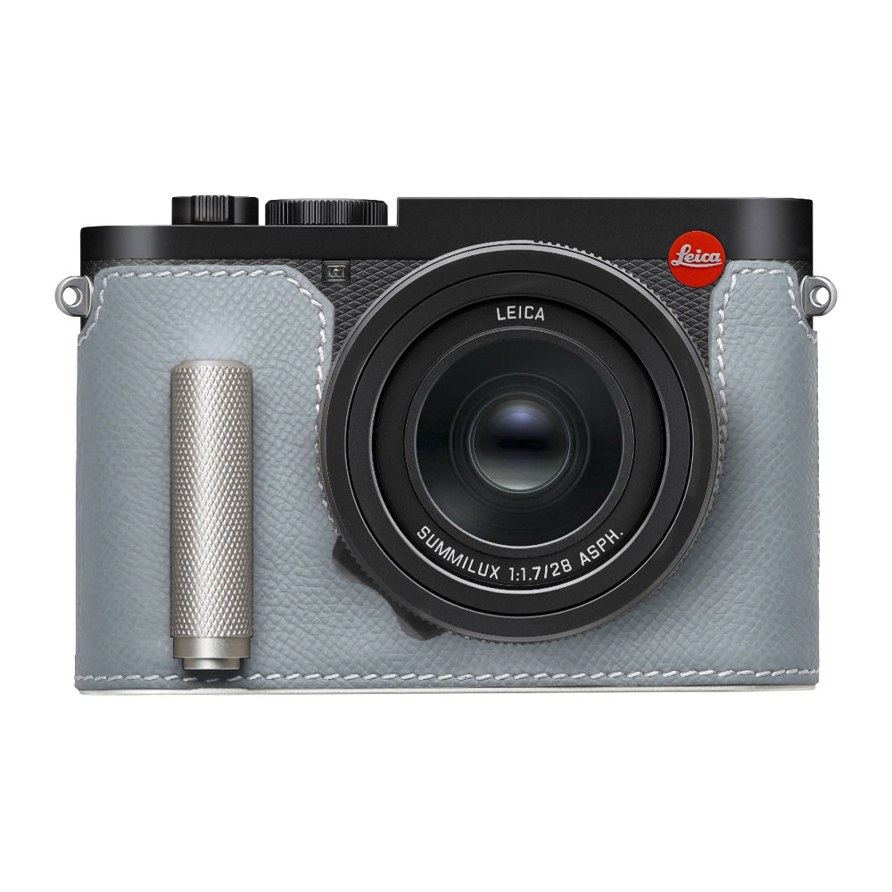 LEICA Q3/Q3 43用 本革ケース クラシック シグニチャーグリップ ライトブルー/白ステッチ PTBL005