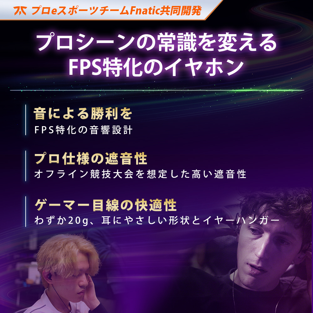 多くの国際大会で優勝を収め、世界的にも絶大な人気を誇るプロeスポーツチームFnaticと密な協力関係で共同開発を実施。サウンドのチューニングから、遮音性、装着感、ケーブルの長さに至るまでのあらゆるデザイン決定を彼らと行いました。それにより、競技パフォーマンスを最大限発揮するプロ仕様のゲーミングヘッドホンが誕生しました。