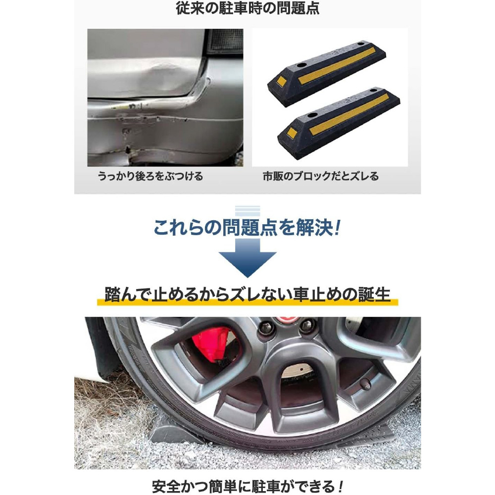 置くだけ!軽量タイヤストッパー。全車種に対応するフリーサイズです。