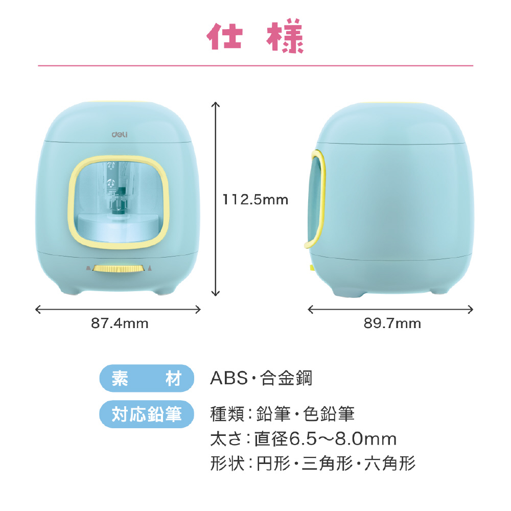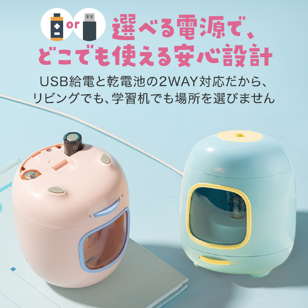 電動鉛筆削り 選べる3通りのとがり方 電池・USB給電両対応 削りすぎストップ機能 ブルー deli 青 DLI-SESVA13BL [自動タイプ]