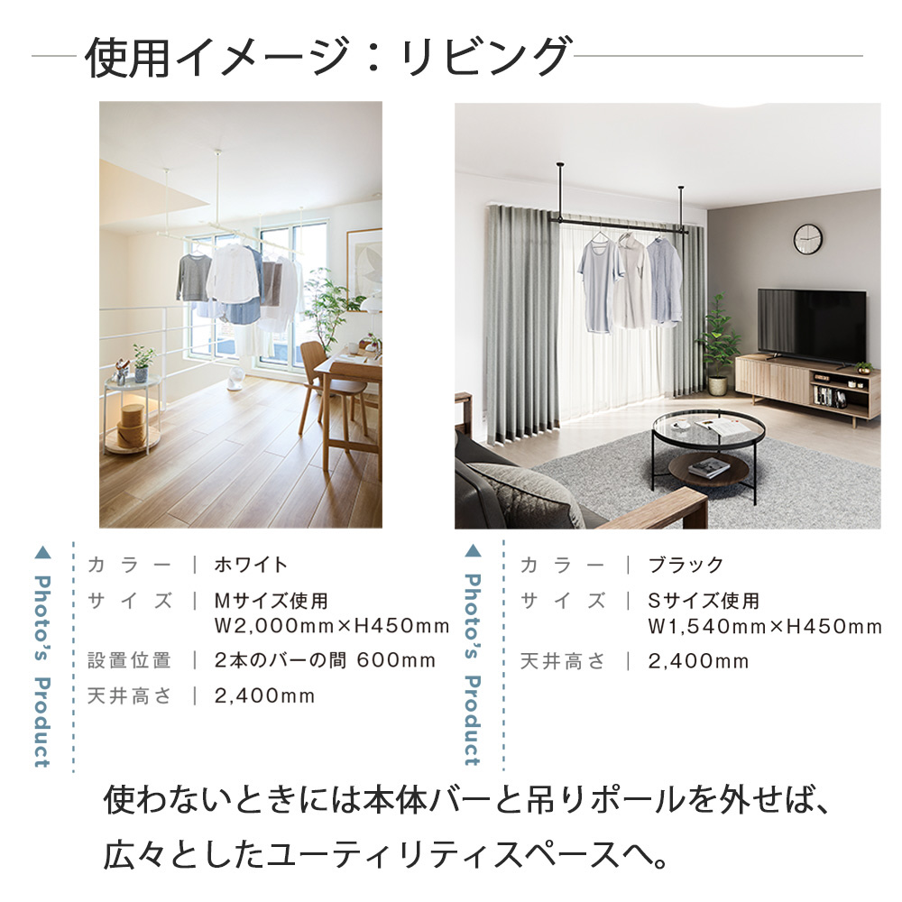 ※吊りポールは塗装仕上げのため、金属製などの硬いもの・鋭利なものを掛け外しすると塗装剥がれの原因となるためご注意ください。