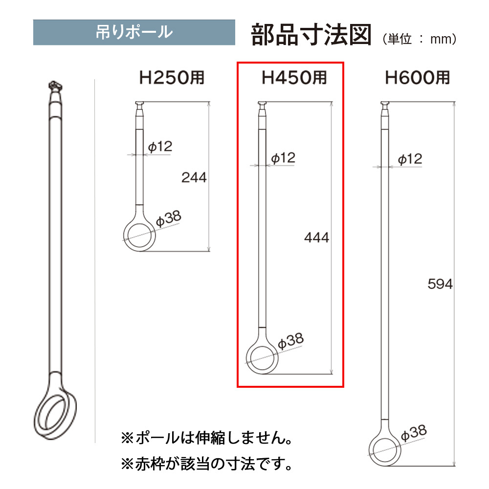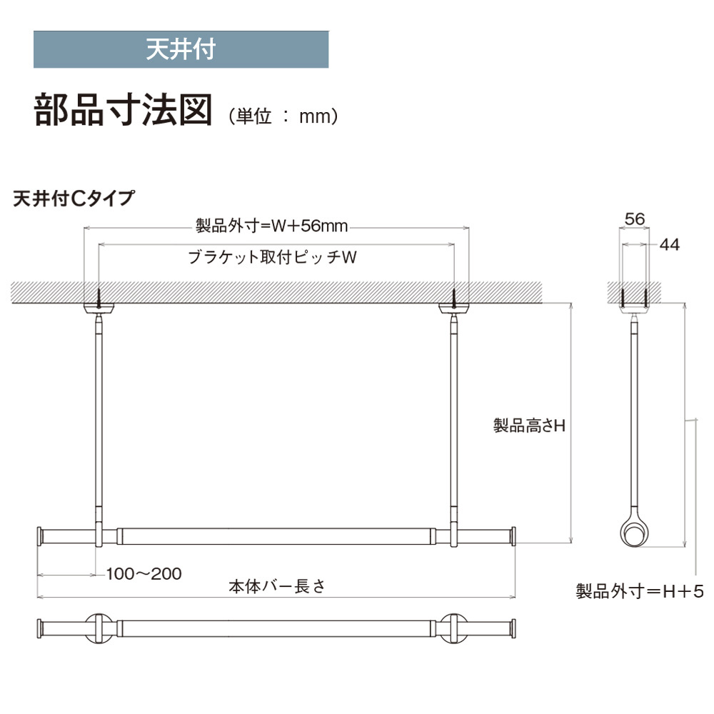 ※ブラケットと吊りポールのセット品番です。本体バーは付属していません。