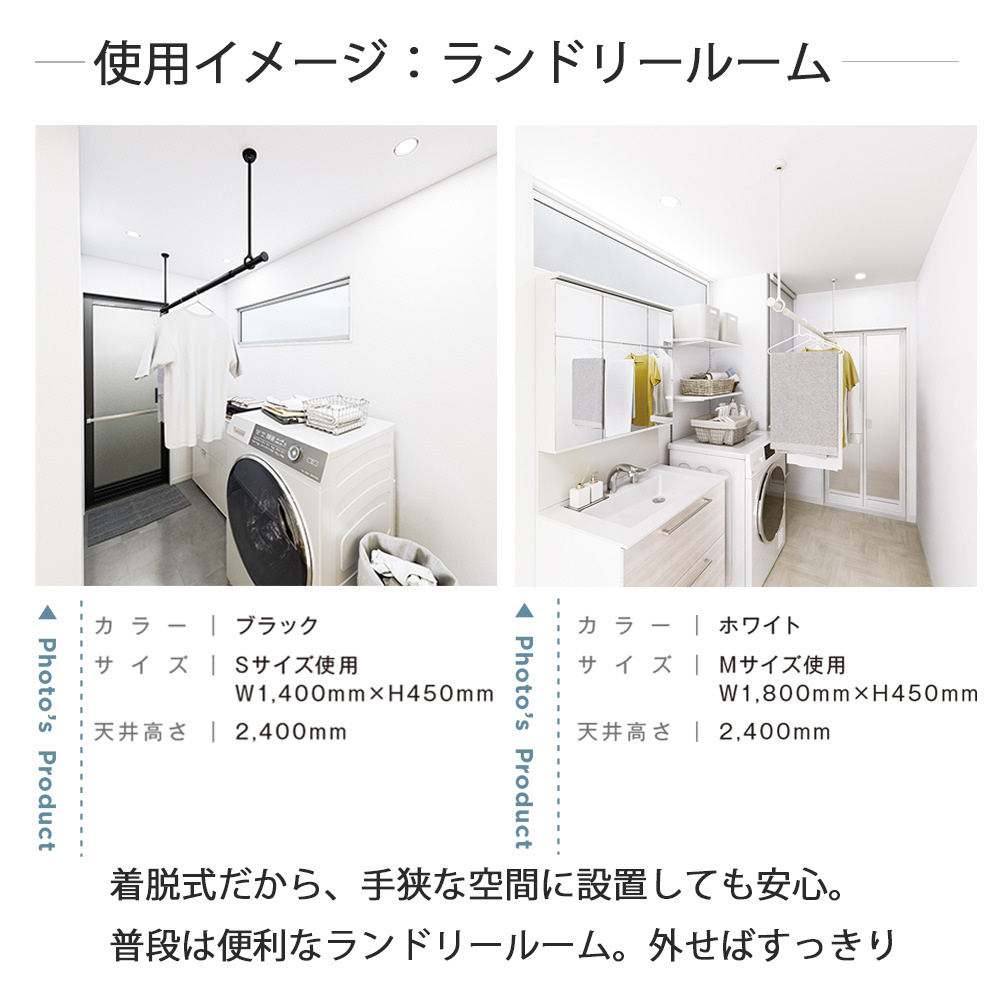 吊りポールの着脱が可能で、設置シーンを選ばないランドリーバーシリーズ。