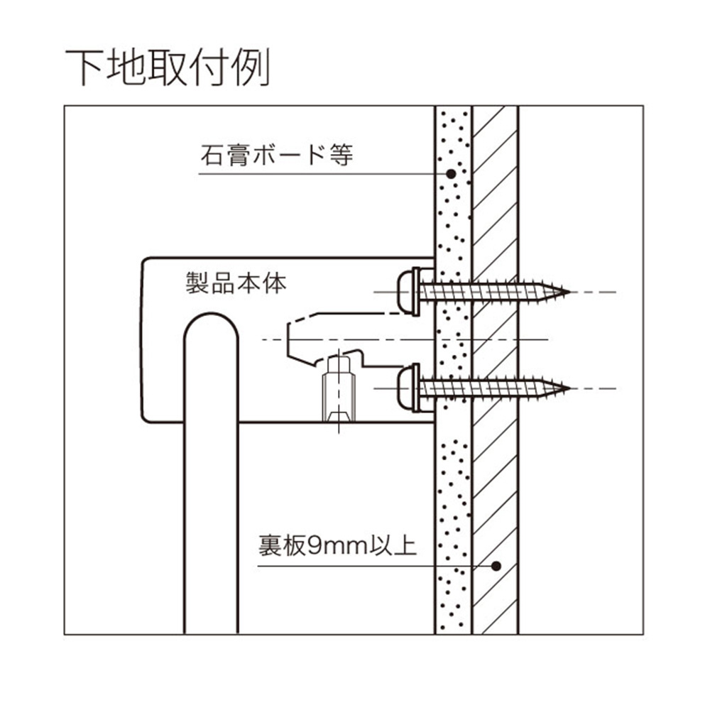●壁仕上げ前に固定ネジ用の9mm以上の裏板(合板等)をあらかじめ設けるか、石こうボードに施工する場合は別売のアンカーをご用意ください。