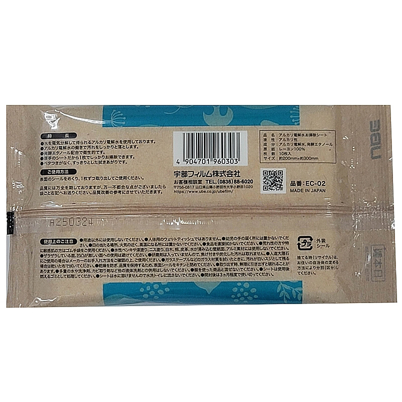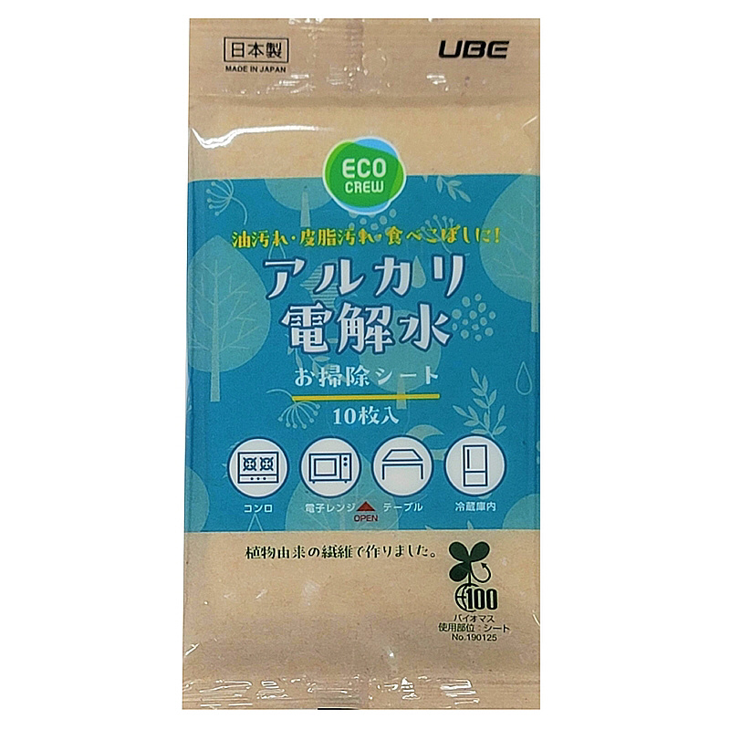 アルカリ電解水は油汚れ・皮脂汚れ・食べこぼし・血液などの酸性の汚れを中和し落とします。植物由来100%の不織布シート使用。合成界面活性剤不使用、植物由来のアルコールを配合しているので環境にやさしい。pH安定剤などの添加物不使用。お掃除後にベタつき、白残りがほとんどありません。