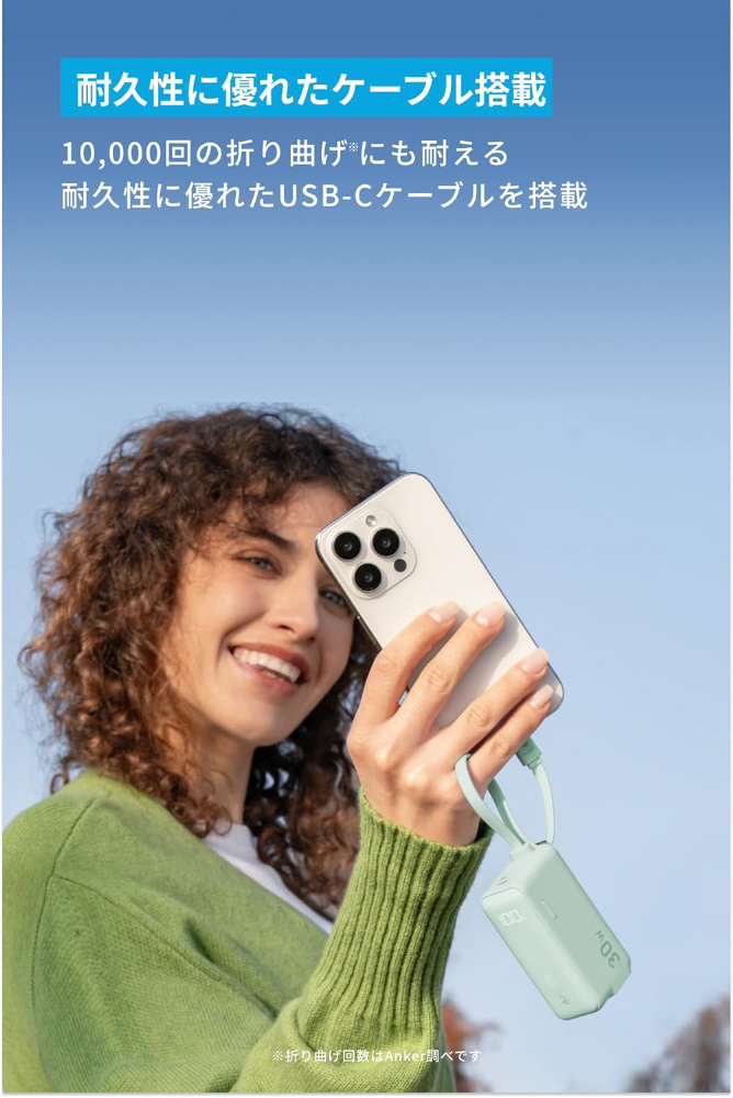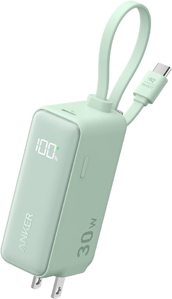 モバイルバッテリー Power Bank (30W Fusion Built-In USB-C ケーブル) グリーン A1636N63 [USB Power Delivery対応 /2ポート]