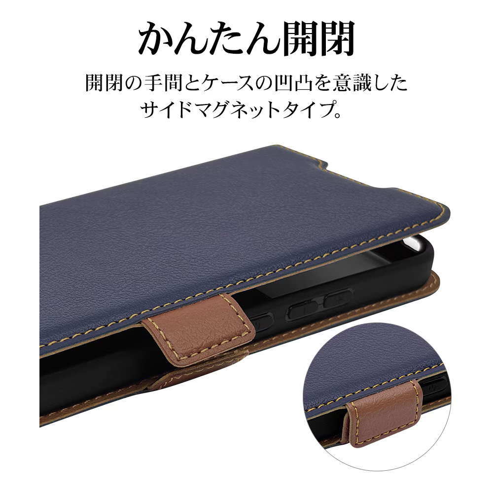 本製品は液晶画面側と背面側の両面を保護できる薄型で持ちやすい手帳型ケースです。