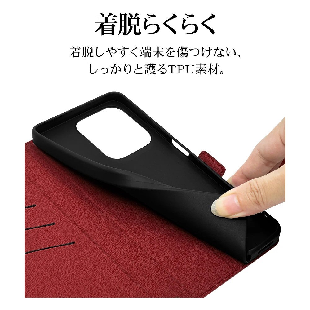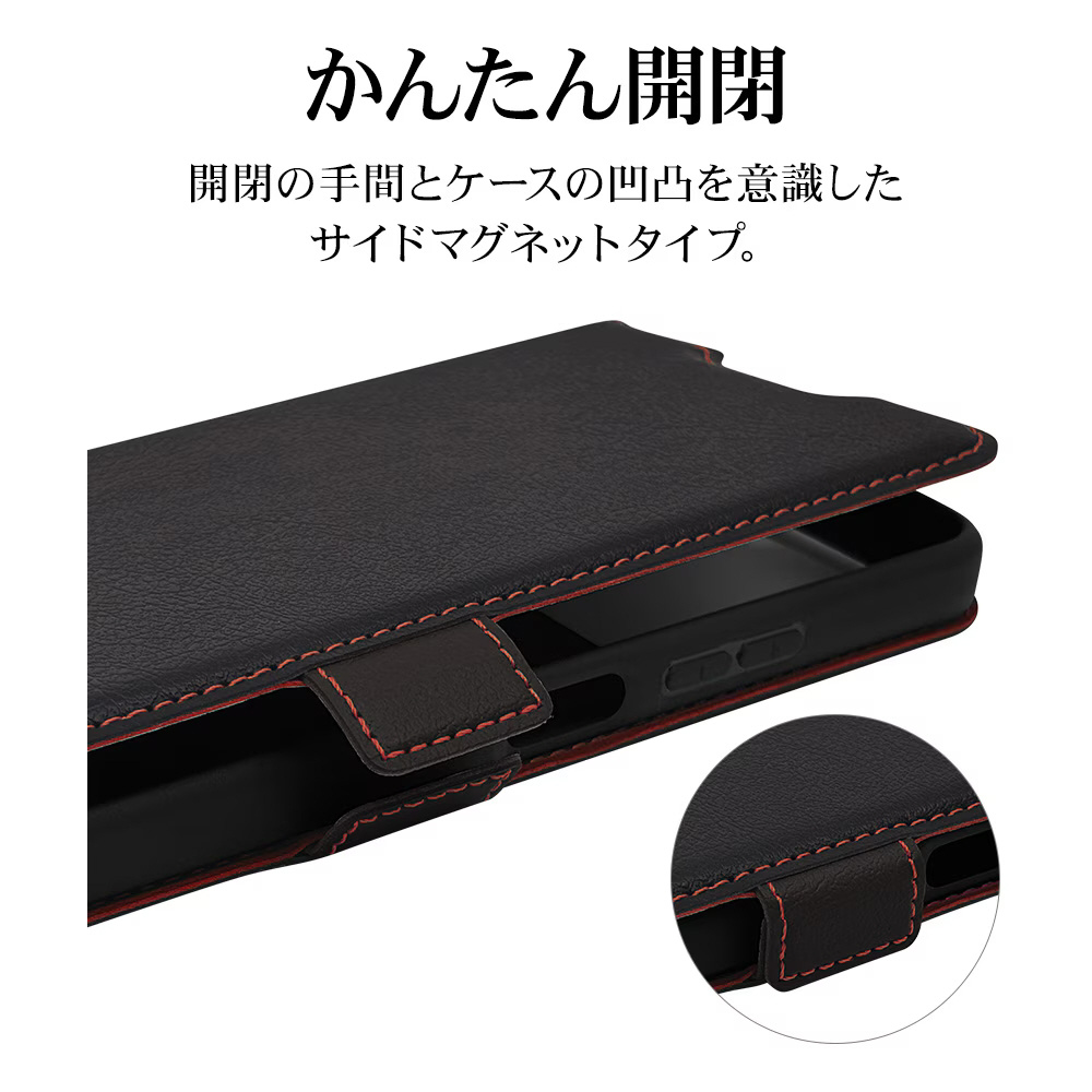 本製品は液晶画面側と背面側の両面を保護できる薄型で持ちやすい手帳型ケースです。