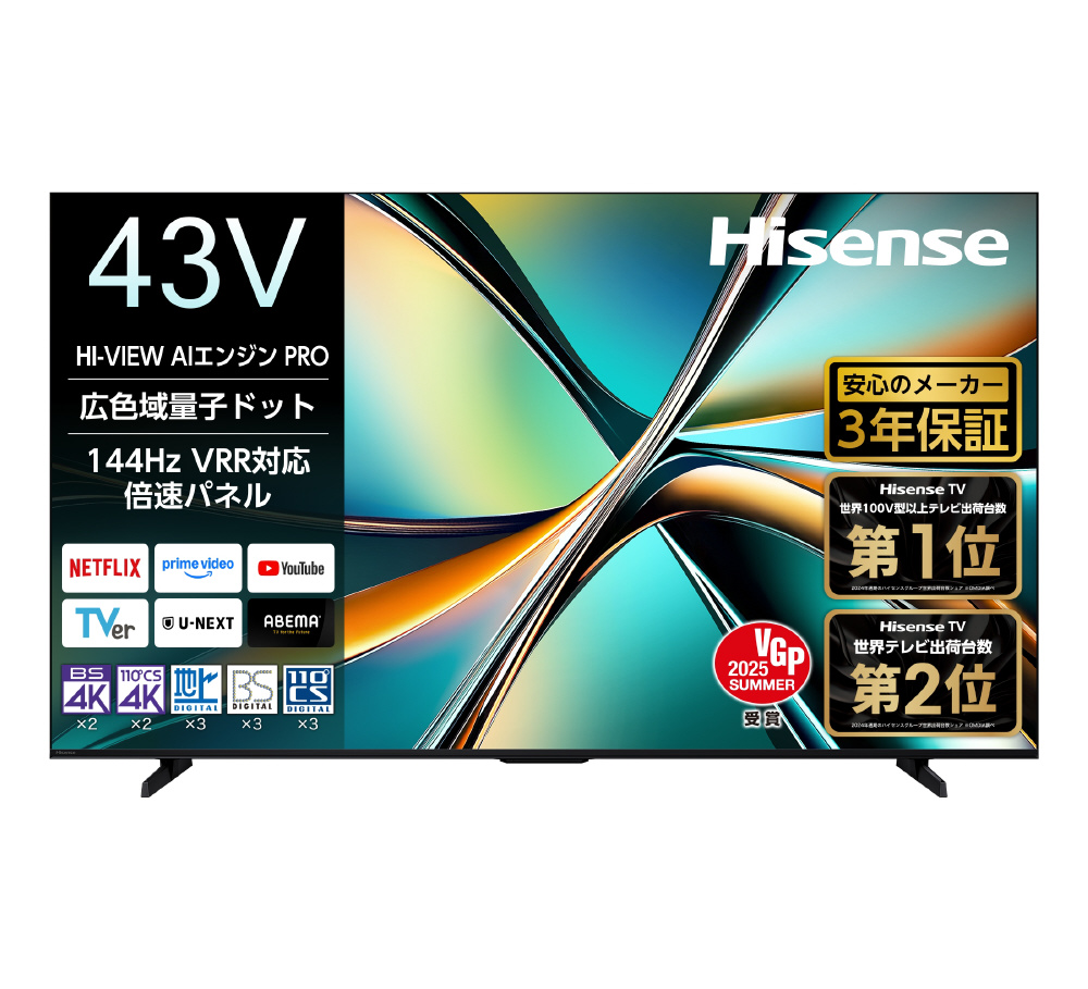 液晶テレビ 43U6R [43V型 /Bluetooth対応 /4K対応 /BS・CS 4Kチューナー内蔵 /YouTube対応]