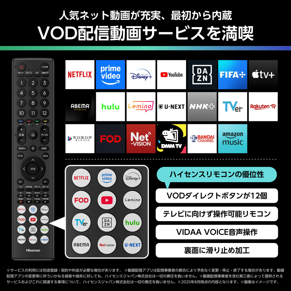 ●人気の動画配信アプリが初めから内蔵!お手軽システム「VIDAA OS」