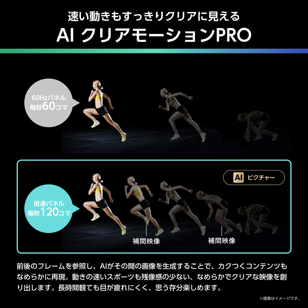 ●AIエンジン×倍速パネルで、スムーズかつくっきりした映像を実現「AIクリアモーション PRO×144Hz VRR対応倍速パネル」