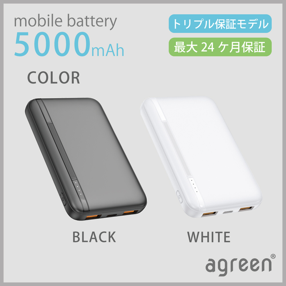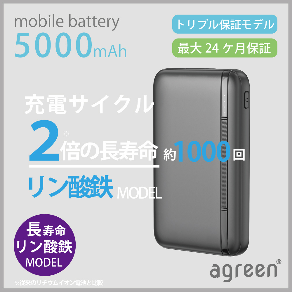 リン酸鉄モバイルバッテリー 5000mAh 2倍の長寿命 agreen ホワイト JMB-KX50-WH