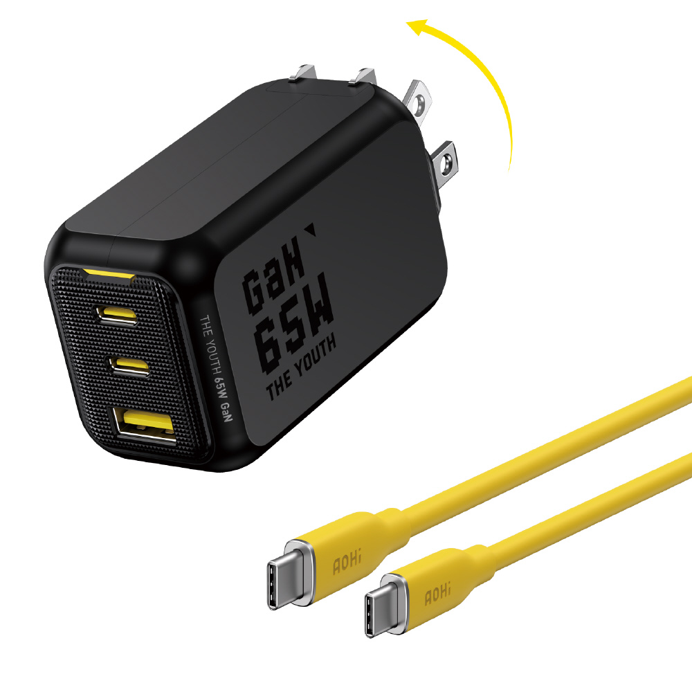AOHI THE YOUTH PD 65W USB-C 1ポート急速充電器 Type-Cケーブル付属
