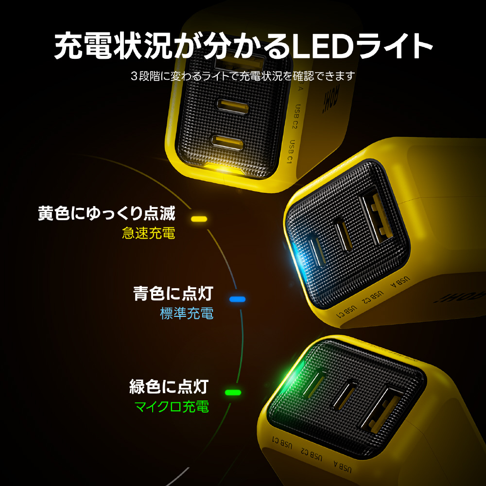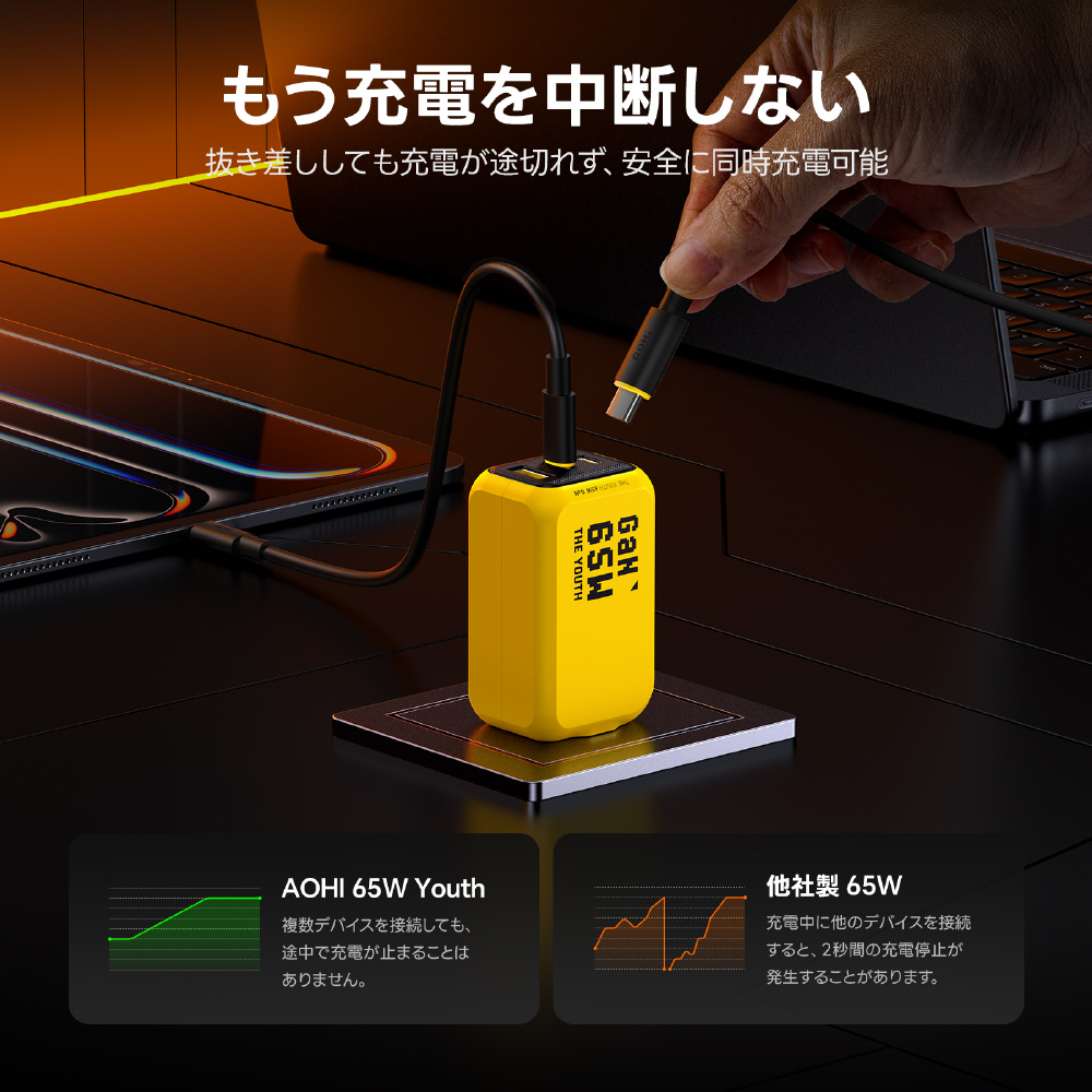AOHI THE YOUTH PD 65W USB C×2ポート USB A×1ポート 急速充電器 Type-Cケーブル付属