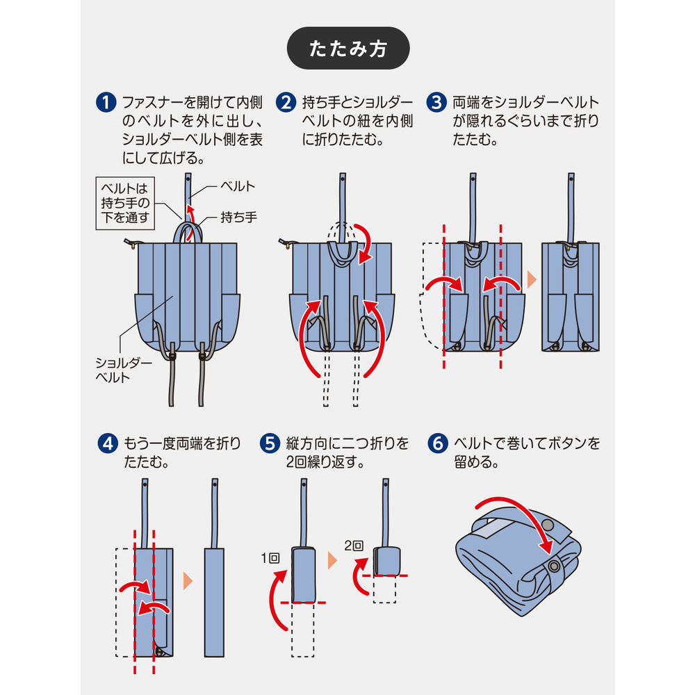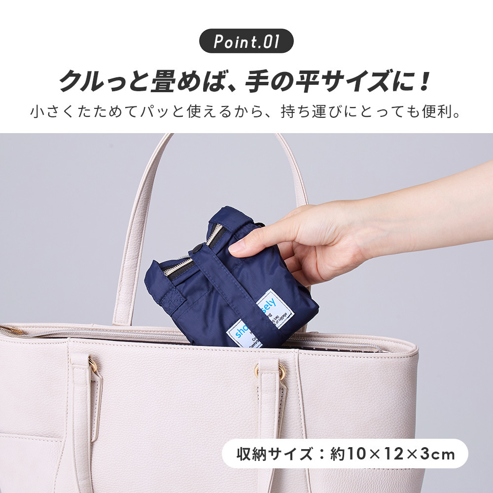 コンパクトにたためて持ち運びに便利な大容量エコバッグです。