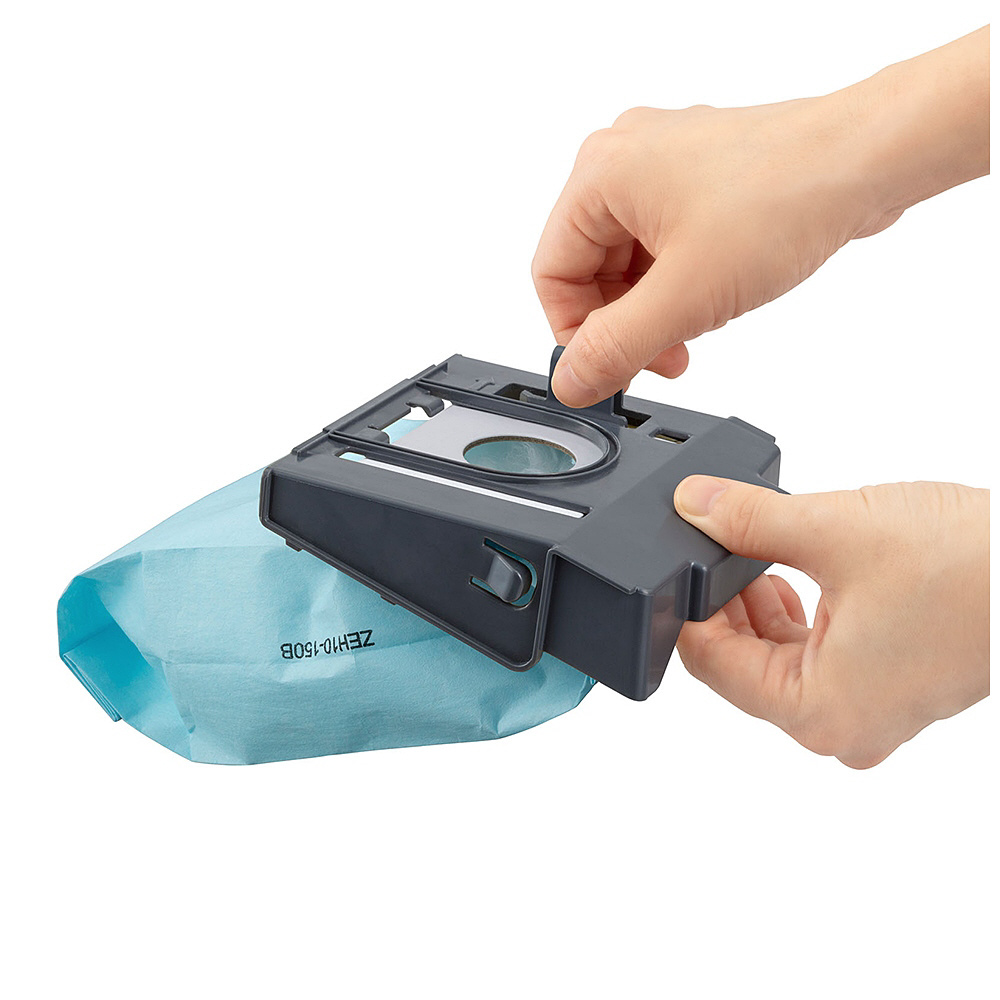 ・本体フィルターをオートエアー洗浄ダストステーションニ戻すたびに、本体フィルターに付着した細かいゴミをエアーで剥がして毎回リフレッシュ。ダストステーションに本体を戻すとダストステーションの吸引が開始し、本体にたまったゴミを吸い取ります。ダストステーションのゴミ捨ては約70日に1回。
