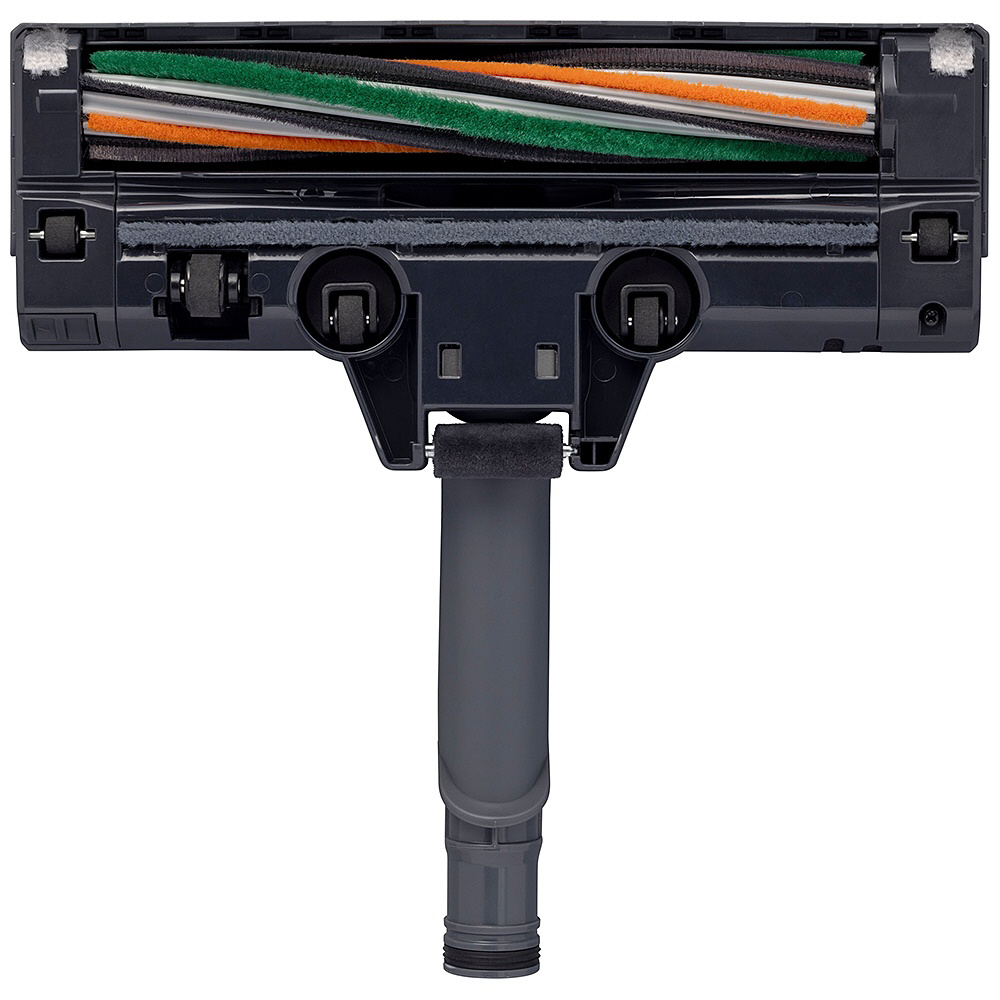 ・狭いところはブラシ毛が付いた 2WAY ノズルで。付属品は本体に収納でき、屈まずにラクに着脱できます。