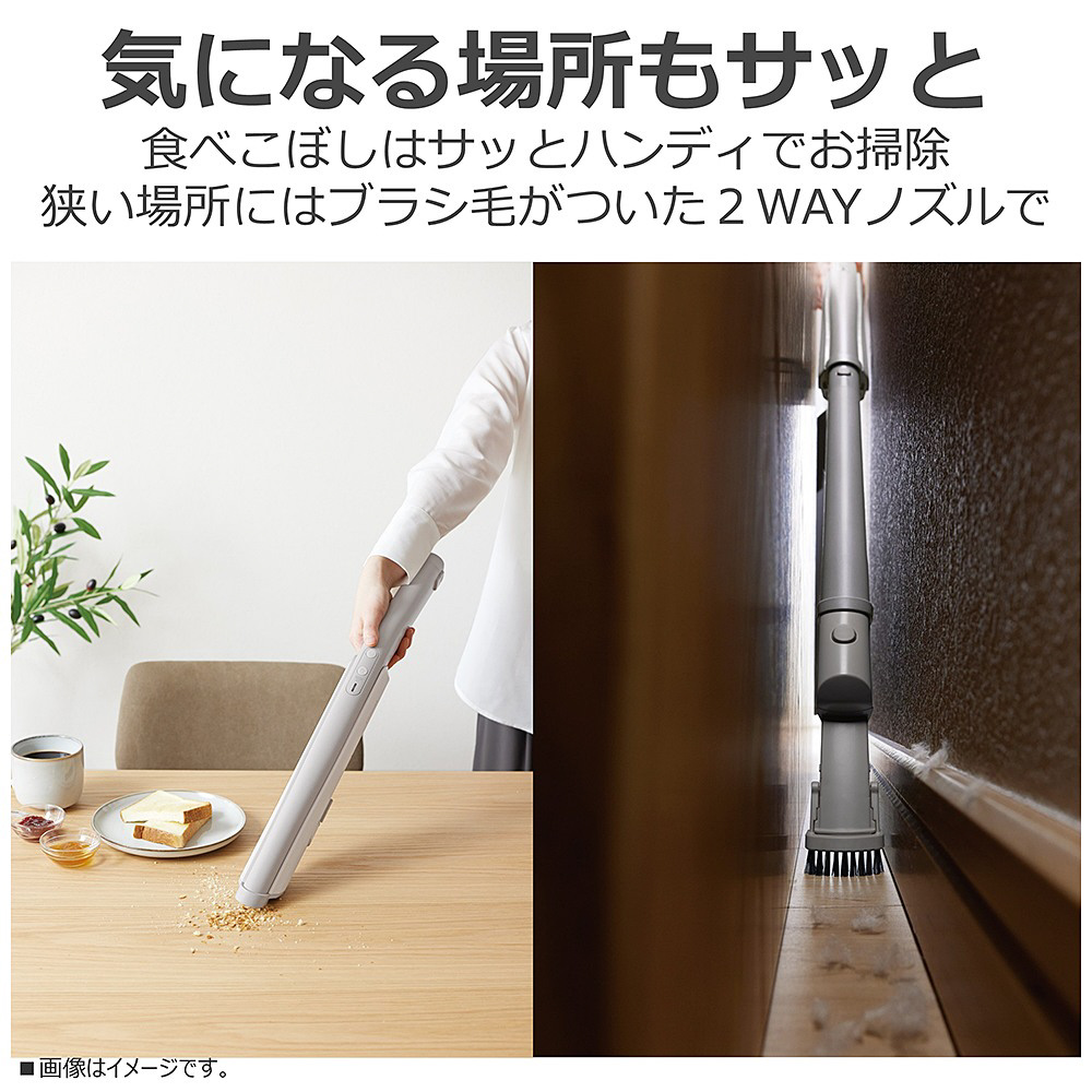 ・延長管を外す 1 ステップで簡単にハンディにできるので、ソファーや、テーブルの食べこぼしなどもサッとお掃除できます。