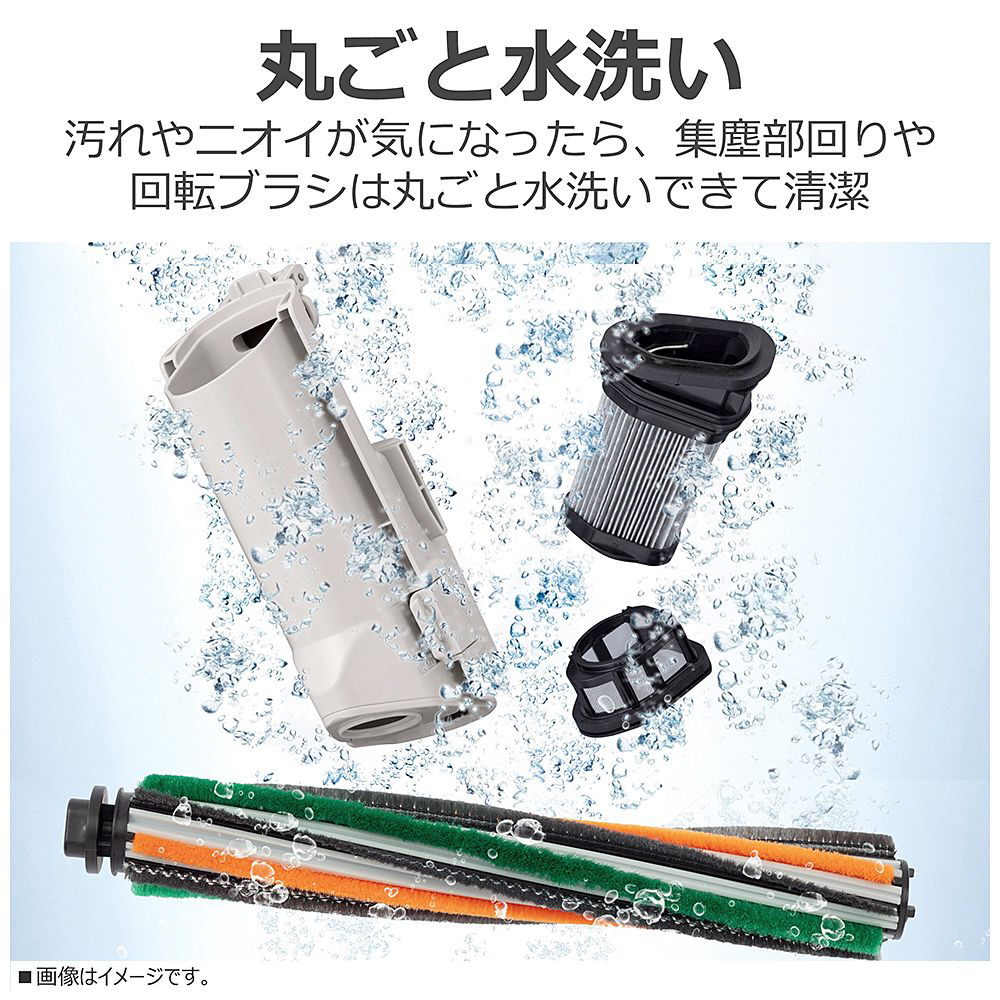 ・「ハイパワーコンパクトモーター」の強力パワーで、目につくゴミをサッと取りこぼしなく吸引します。