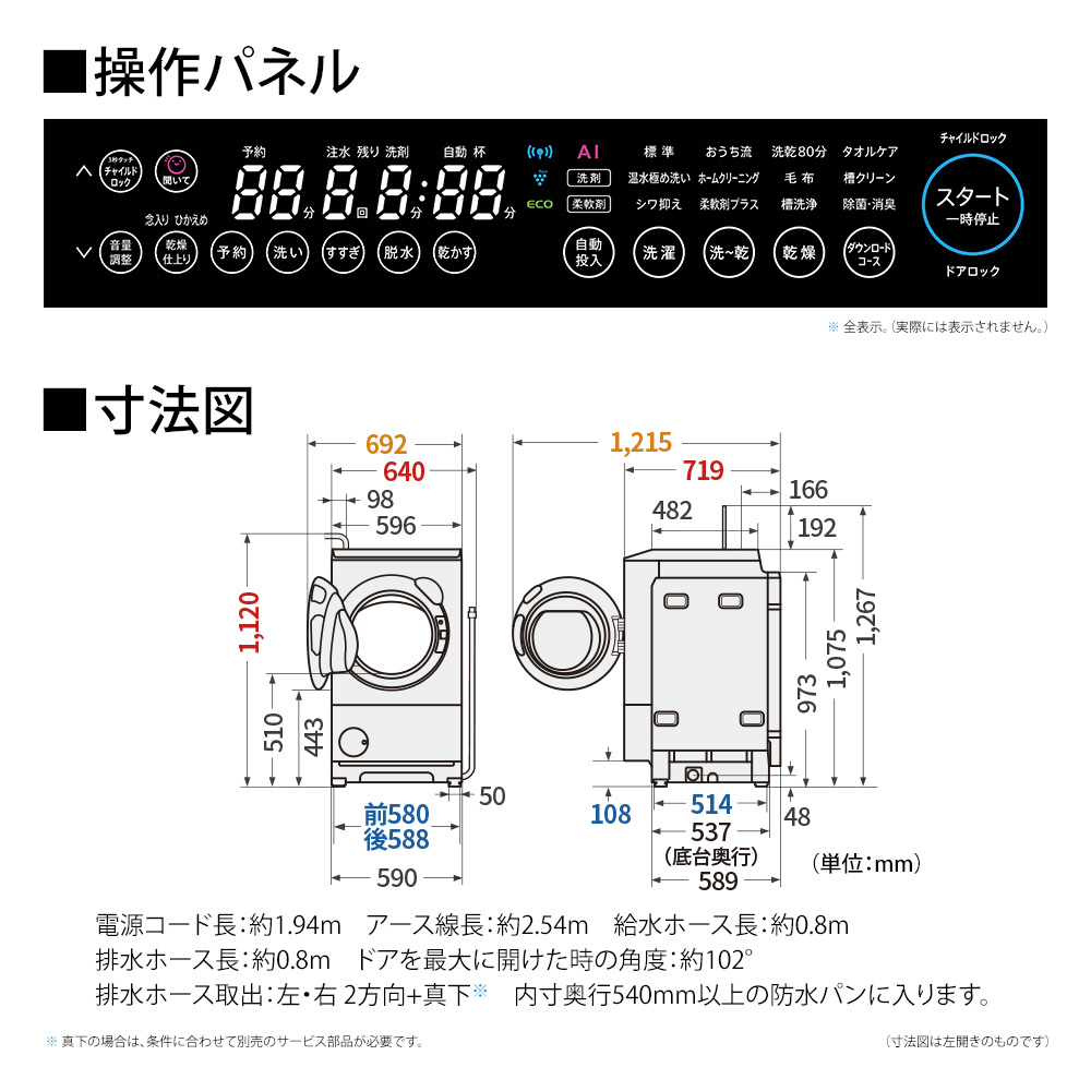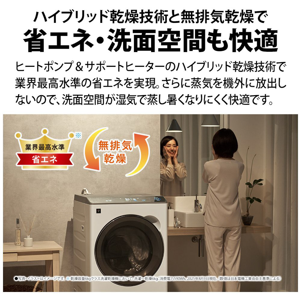 *乾燥容量6kgクラス洗濯乾燥機において。洗濯〜乾燥6kg:消費電力量590Wh。2025年8月1日現在