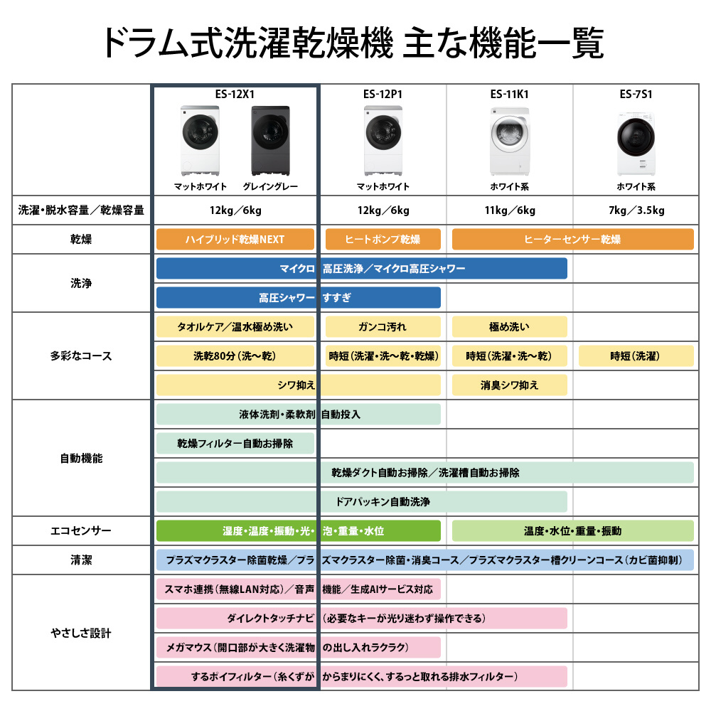 ドラム式洗濯乾燥機 マットホワイト ES-12X1-WL [洗濯12.0kg /乾燥6.0kg /ヒートポンプ乾燥 /左開き]