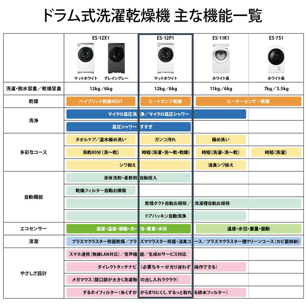 ドラム式洗濯乾燥機 マットホワイト ES-12P1-WL [洗濯12.0kg /乾燥6.0kg /ヒートポンプ乾燥 /左開き]