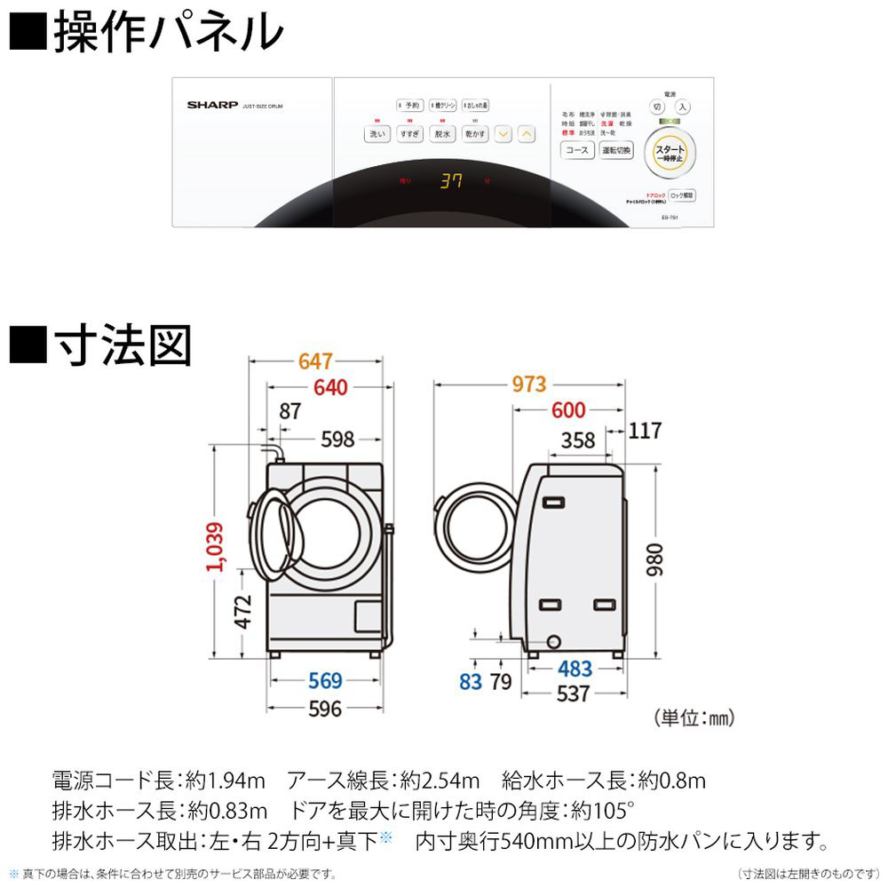 ドラム式洗濯乾燥機 ホワイト系 ES-7S1-WR [洗濯7.0kg /乾燥3.5kg /ヒーター乾燥(水冷・除湿タイプ) /右開き]