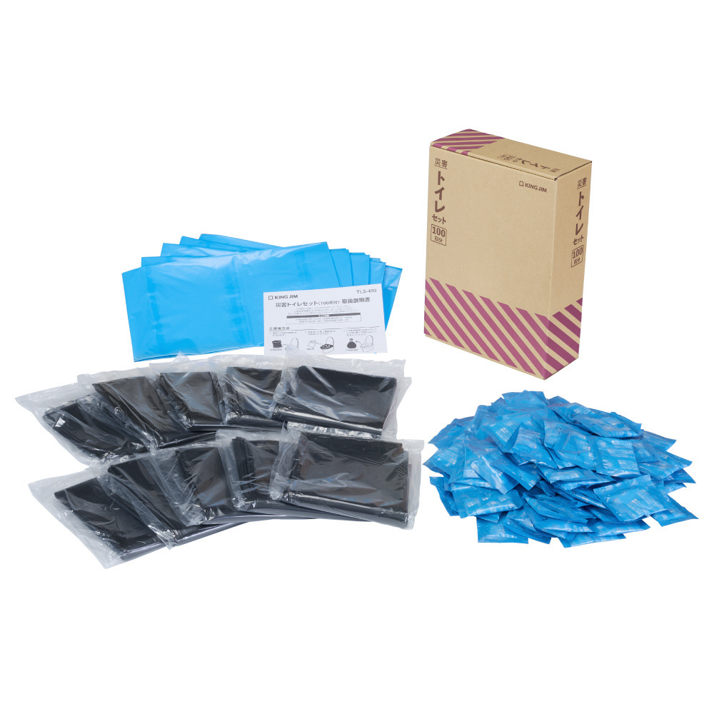 災害時のトイレ問題に備える100回分の簡易トイレセットです。コンパクトに備蓄して、もしもの時はスムーズに。