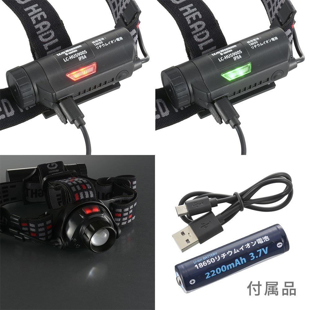 LEDヘッドライト USB充電式 リードウォーリア 900ルーメン LC-HUS900S-K [LED /充電式 /防水対応]