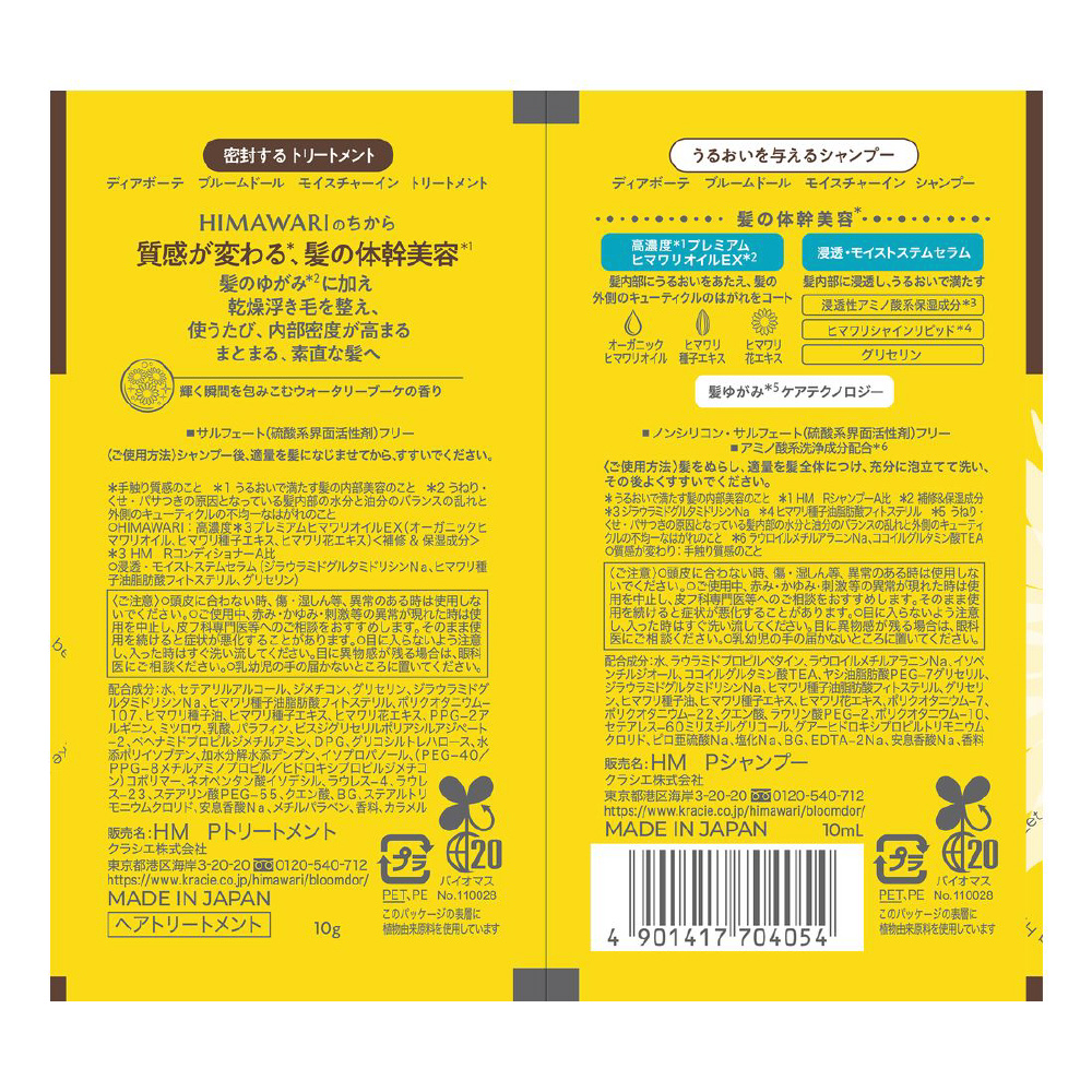●髪のゆがみに加え、乾燥浮き毛を整え、使うたび、内部密度が高まる●高濃度プレミアムヒマワリオイルEX配合●浸透・モイストステムセラム配合。髪内部に浸透し、うるおいで満たす●髪ゆがみケアテクノロジー●ノンシリコンシャンプー●アミノ酸系洗浄成分配合(シャンプー)●全品サルフェートフリー●輝く瞬間を包みこむウォータリーブーケの香り
