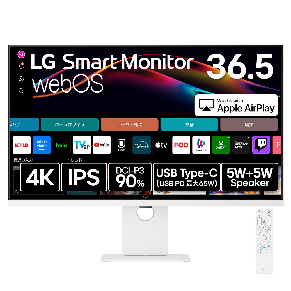 USB-C対応 PCモニター 36.5型 LG Smart Monitor ホワイト 37U730SA-W [4K(3840×2160) /ワイド /60Hz]
