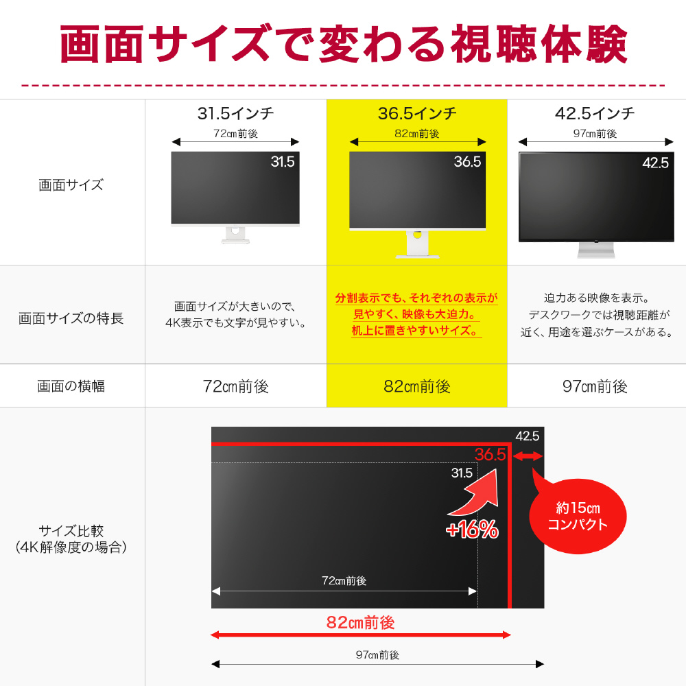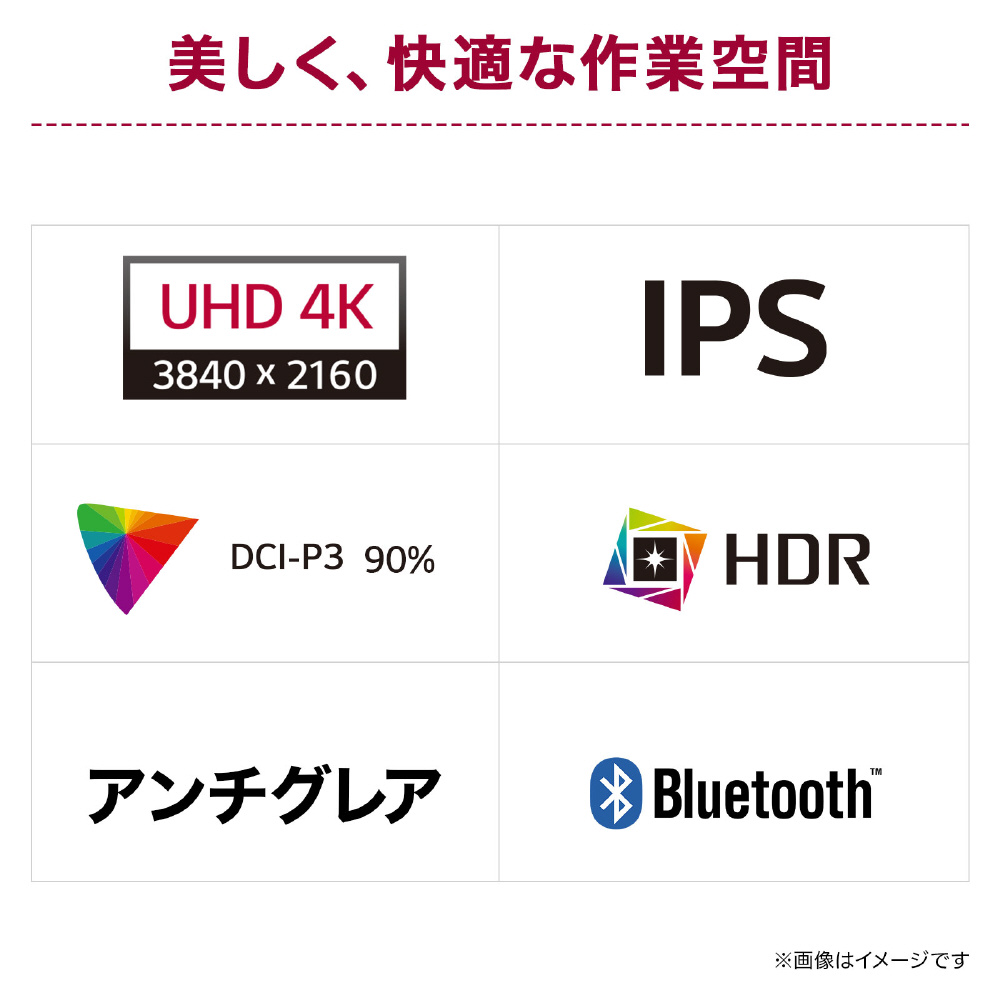 フルHD解像度の4倍広く使える画面を駆使して、多くの情報表示が可能になるのはもちろん、視野角が広く、発色が鮮やかで自然な映像表現を実現するIPSパネルが4Kの映像美を一層引き立たせます。