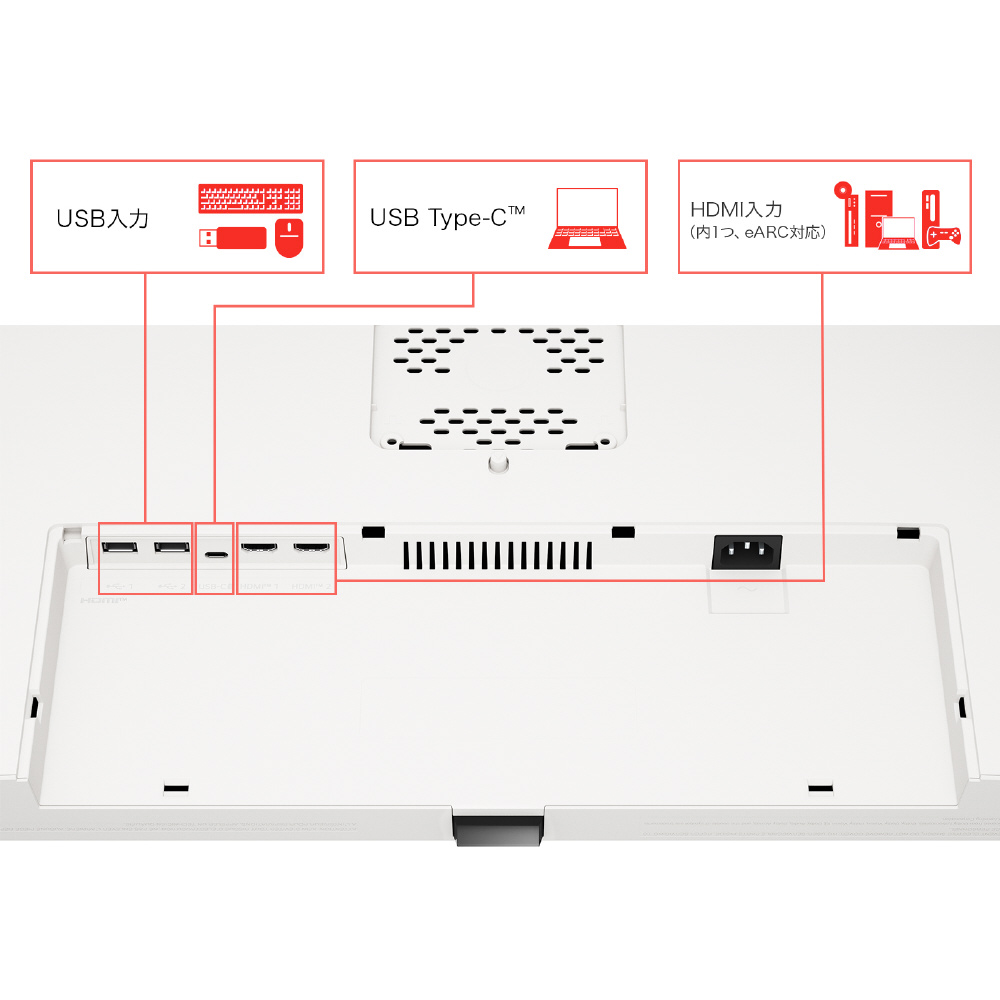 ケーブル1本で映像・音声信号、データ転送、給電*(65Wまで)が可能なUSB Type-C端子を搭載。お手持ちのノートパソコンも簡単にセットアップ。USB Type-C接続なら、作業をしながら、ノートパソコンの充電もできます。また、USBハブとして、モニターのUSB-A端子にUSB機器(マウスなど)を接続しておけば、接続したUSB機器をノートパソコンで使用できます。また、パソコンを接続していないときは、webOSの操作に使用できます。より少ないケーブルでデスク環境を構築できるので、デスク周りもスッキリきれい、デスク環境がより理想に近づきます。