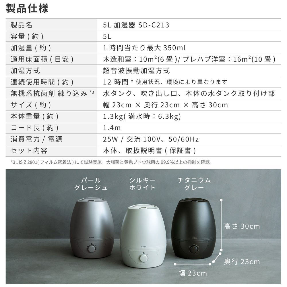 加湿器 パールグレージュ SD-C213CH [超音波式]