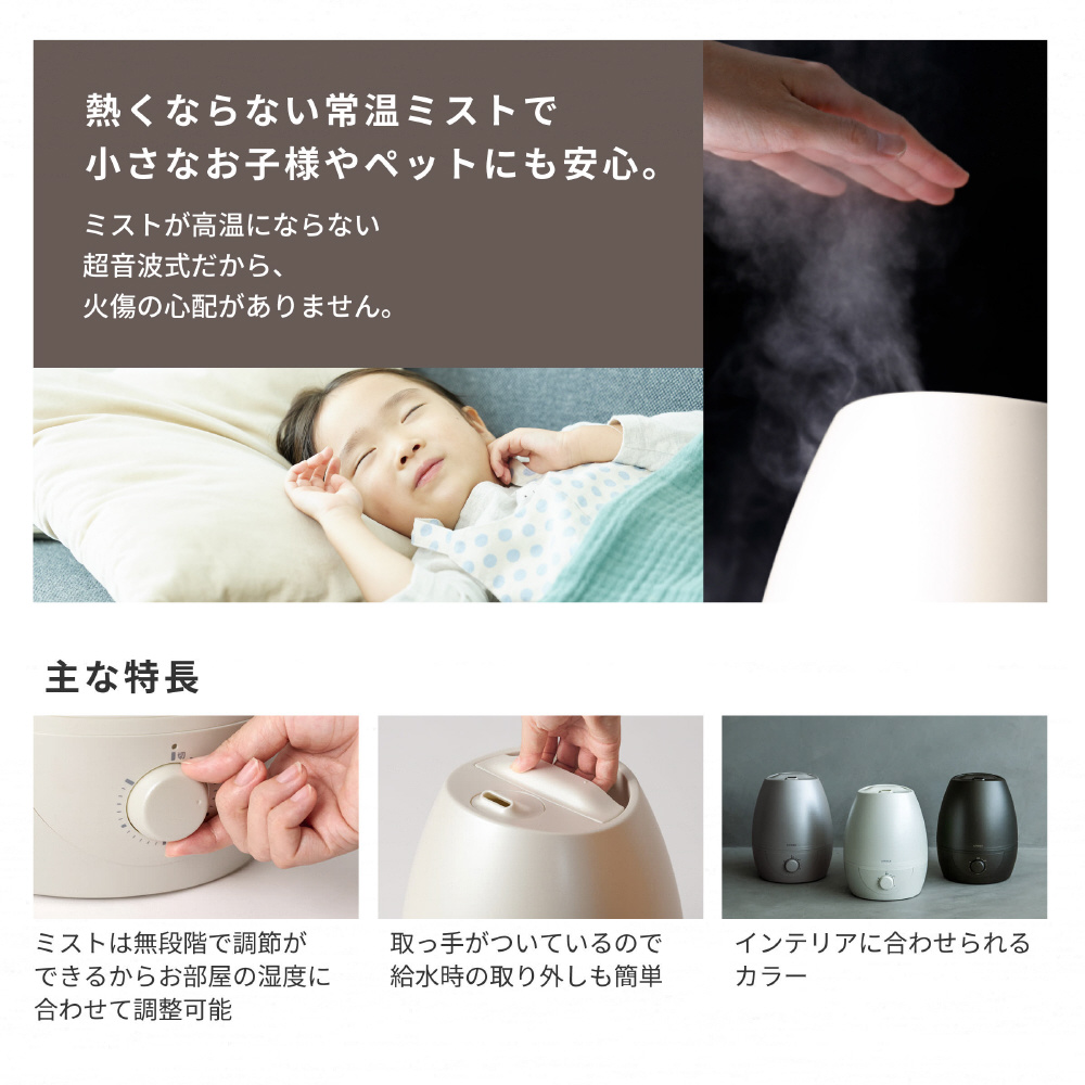 ■熱くならないミストでお部屋をうるおす超音波式
