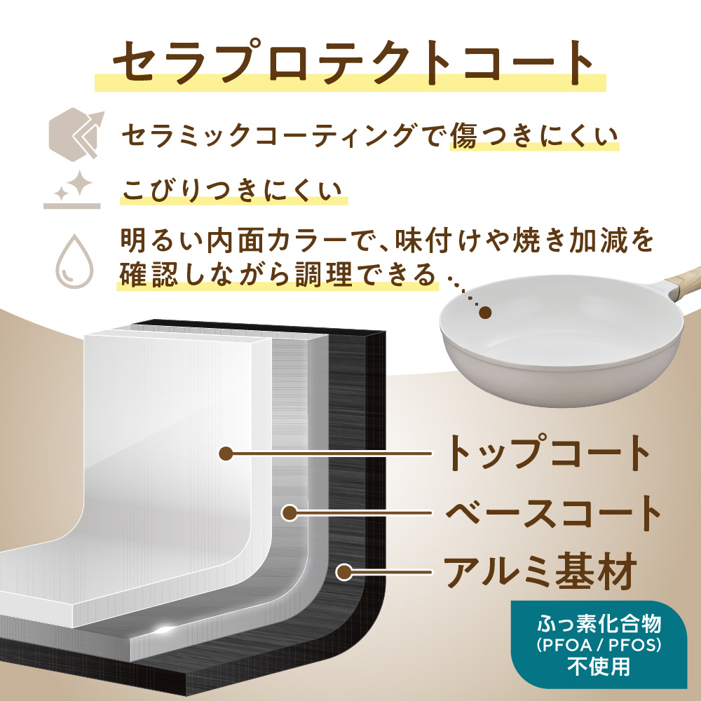 セラプロテクトシリーズ 玉子焼きフライパン ガス火・IH対応 グレージュ KFO-013E-GG [IH対応]