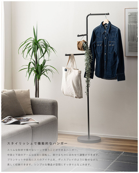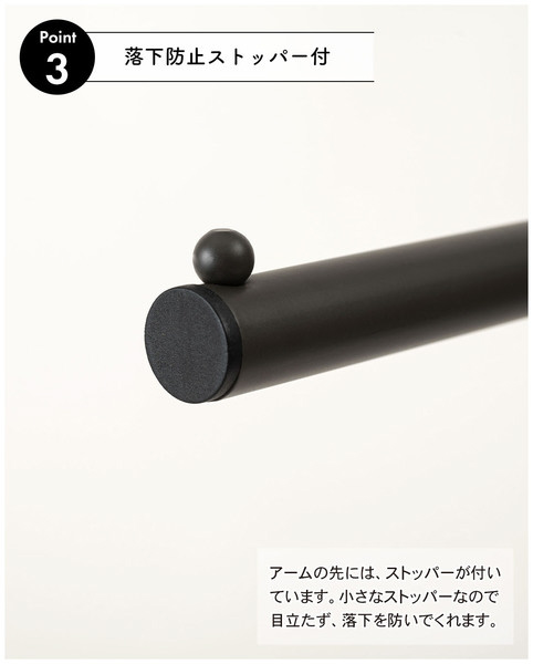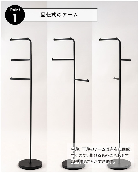 3本のハンガーアームを備えているので、帽子、バッグ、傘など、用途ごとに掛け分けることが可能です。