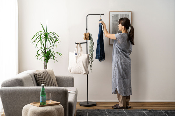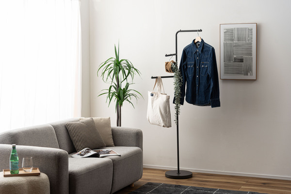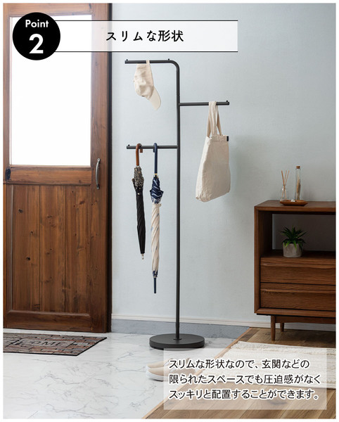 スリムな形状なので、玄関などの限られたスペースでも空間に圧迫感を与えないハンガーです。